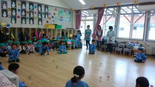 今日は、本町保育所のお友達が幼稚園に来てくれました。