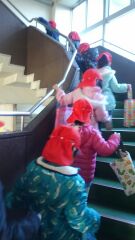 「公民館の中では、静かにしなくちゃ。」「階段は1列だよね」「気を付けて!」