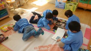 そして、幼稚園に戻ってからお部屋でゆっくりと、お友達と一緒に絵本を見ることを楽しみました。
