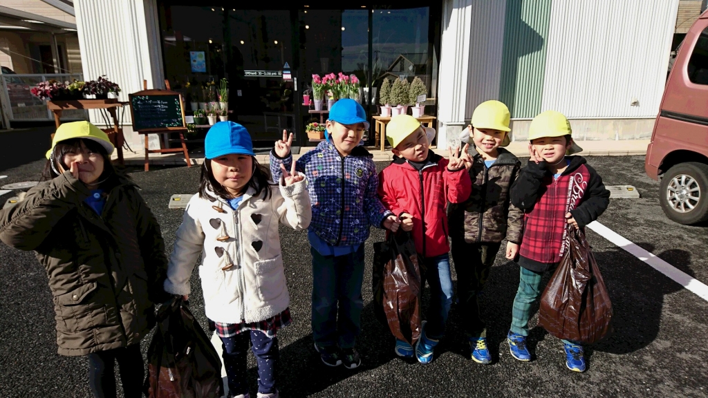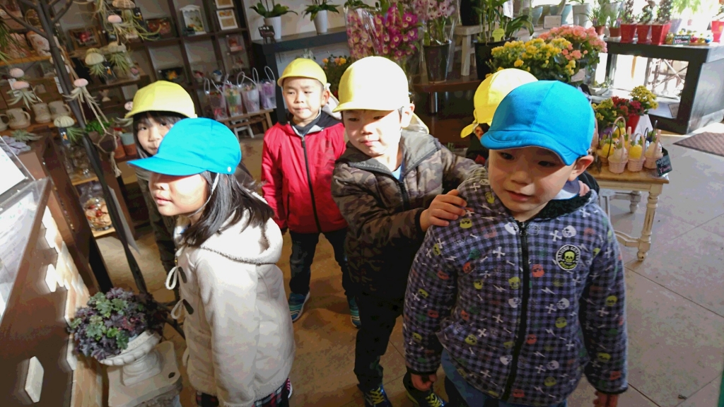 2017年2月6日 16時11分 今日は、『花屋さんにお買いものチーム』が、幼稚園の西側の道路のお向かいにある、