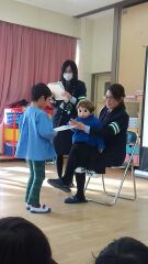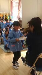 DVD鑑賞の後は、腹話術人形の『けんちゃん』から、年長さんは修了証書を頂きました。