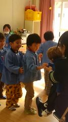 年中さん、年少さんは来年の再開を約束して、握手をして、今日の交通教室は終了しました。