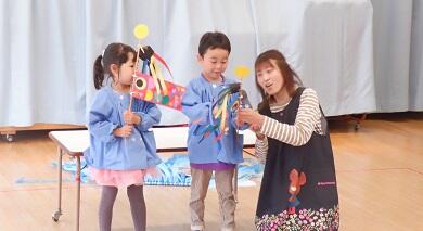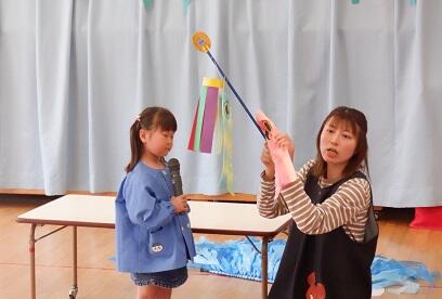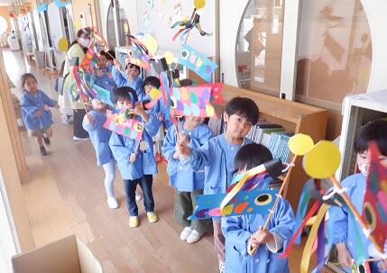 次に、年中さん・年長さんは 自分が作った「こいのぼり」の紹介をしました。