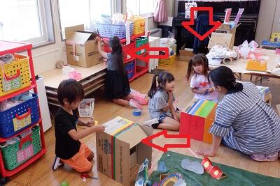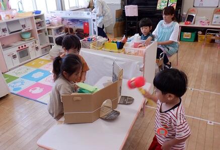 年少さんの部屋をのぞくと・・・もぐらたたきをしている子を発見!