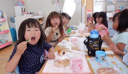 「おいしい、おいしい」と1本のきゅうりを 分けて食べました。