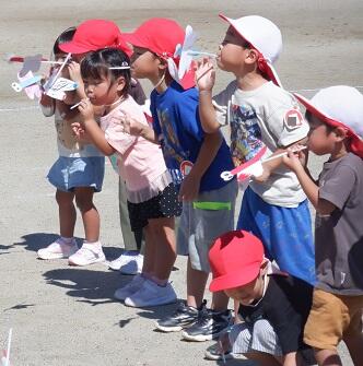 年少さんのかけっこ。年中さんのリレーを見ていただきました。