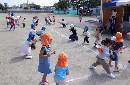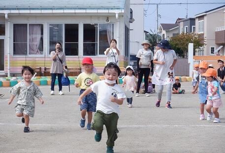まずは・・・年少さんたちと かけっこ! 「はや~い!はやい!」 下