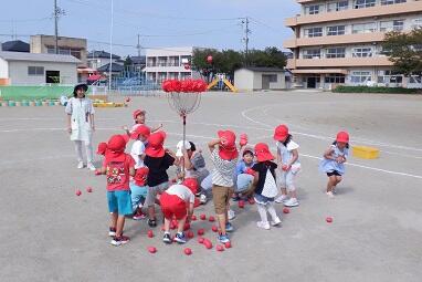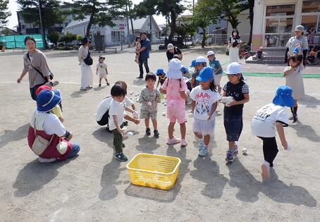 次は、年中さん 対 みゅう広場の子ども達 の玉入れの様子 下