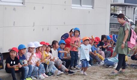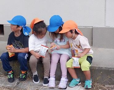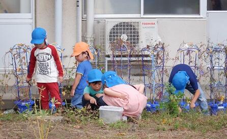 年長さんに交じって 年少さんが虫取りをしていました。 下