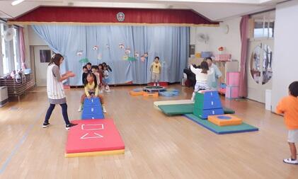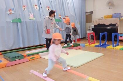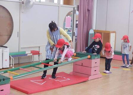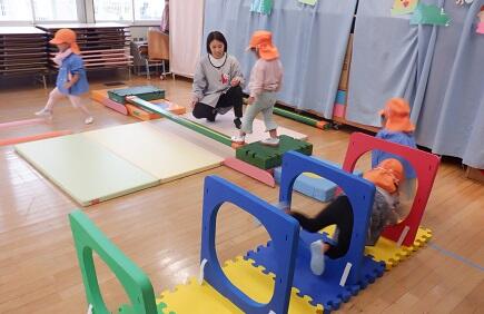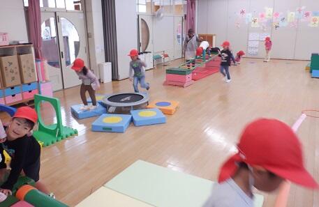 今日は 雨なので 遊戯室で・・・アスレチック。