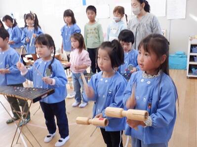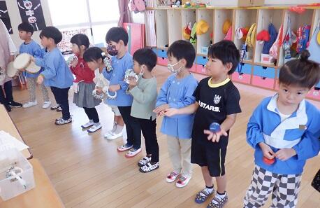 年中さんは・・・合奏の練習は 自分の部屋で やりました。 下