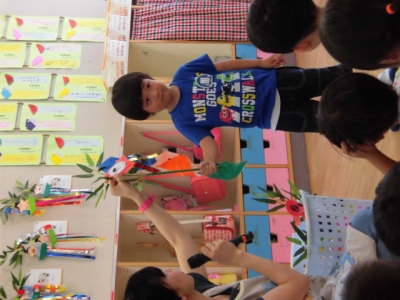 年中は、織姫と彦星の飾りや、輪つなぎを作りしました。