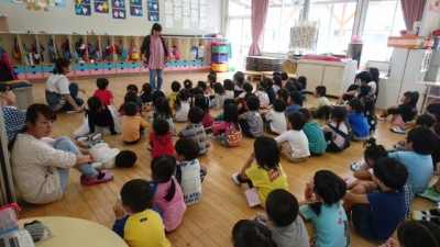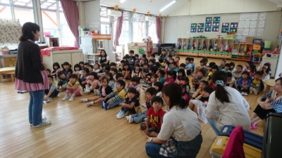 年中クラスに皆で集まり、園長先生のお話を聞きました。