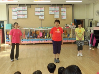 年中・年長組は合同で、50分エアロビを楽しみました。