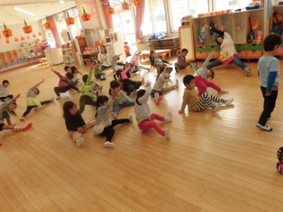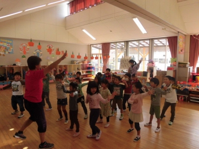 講師の先生のまねっこをしながら、普段とは違う身体あそびができました。
