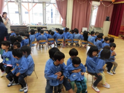 今回のお楽しみは、縦割りグループでのいす取りゲームでした。