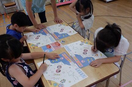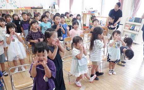 歌「ヤッホッホ夏休み」を ノリノリで歌いました。 下