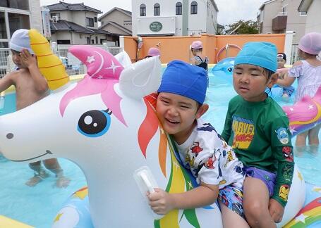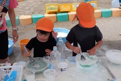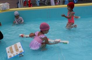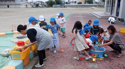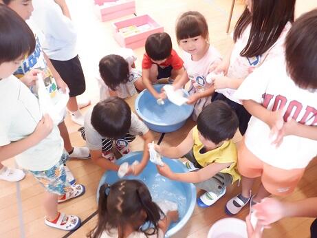 水を流して遊んだり 水に浮かべたり 遊びました。 下