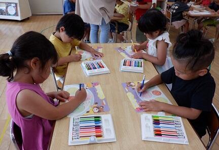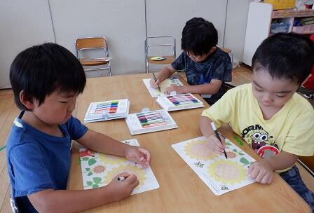 年中さんは・・・冷房の効いた お部屋で 線遊び。