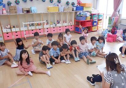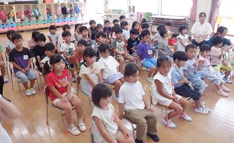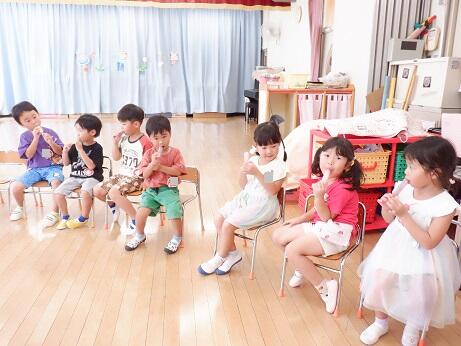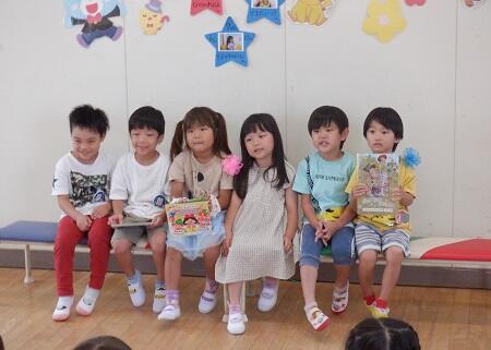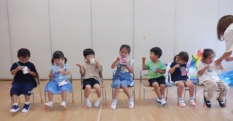 年少さんが みんなと一緒に誕生会に参加するのは 初めてです。