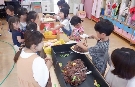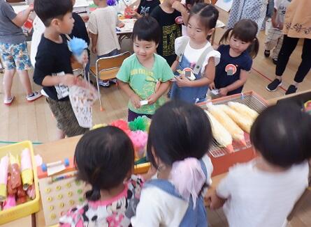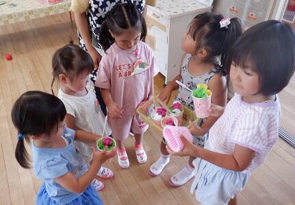 年中さんは・・・朝、年少さんをお招きして・・・お店屋さんごっこ。
