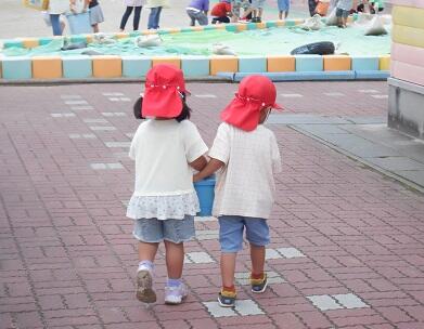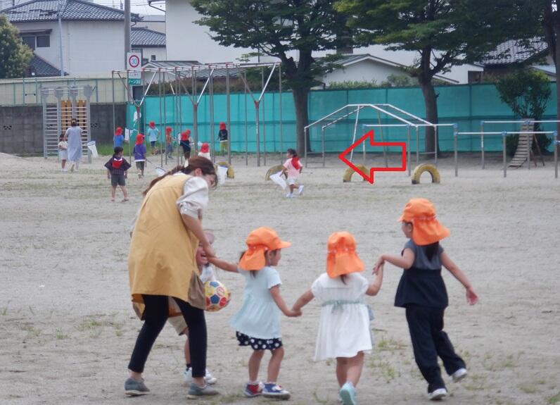 年少さんは・・・仲良く手をつないで 遊んでいました。
