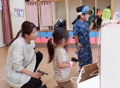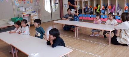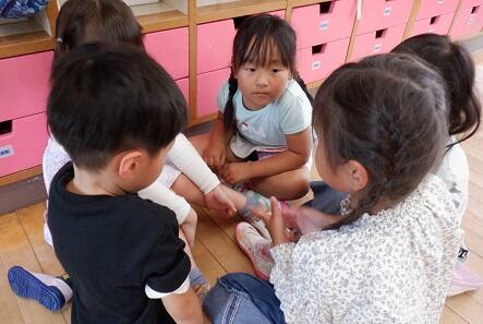 「先生に言わないで 自分たちで話し合うのが ほし組(年長)さんだよ。」