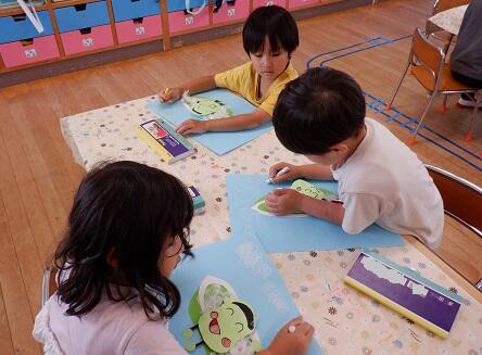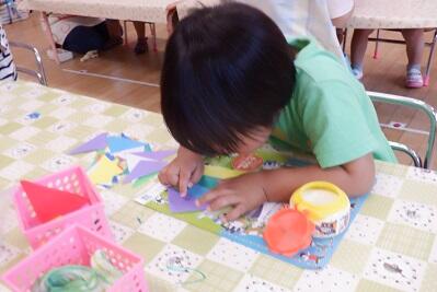 年中さんは・・・そら豆くんを 台紙にはる活動です。