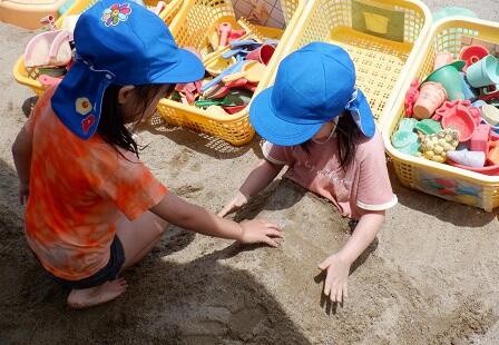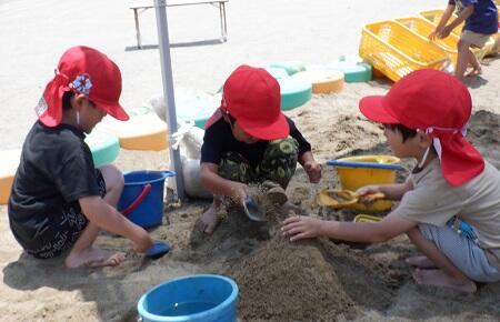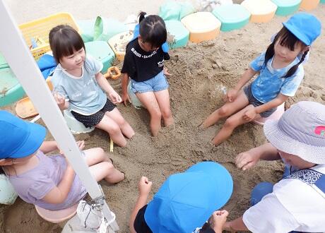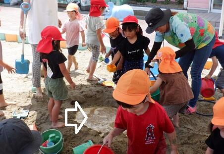水を入れたので・・・「冷た~い」と言いながらも・・・楽しんでいました。