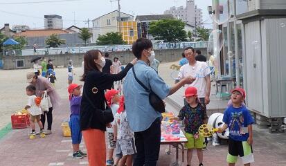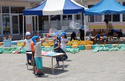 水遊びができない子達は・・・・シャボン玉をやったり・・・下