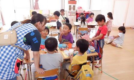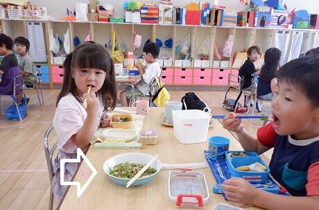 お昼は 遊戯室(年長さんの隣の部屋)で食べました。下