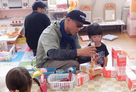 「パパ、すごーい」大きなシャボン玉を作ったり・・・下