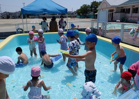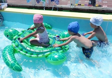 年中さん・年少さん達は・・・・・今日は 最高のプール。