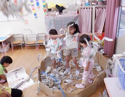 下の子らは・・・・新聞紙のプールで遊んでいました。