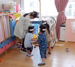 6月21日(金)今日から、年中さんは・・・遊戯室で生活です。