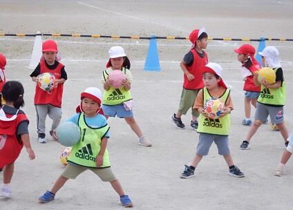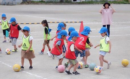 年中と年長さんは・・・今日は・・・サッカー教室。