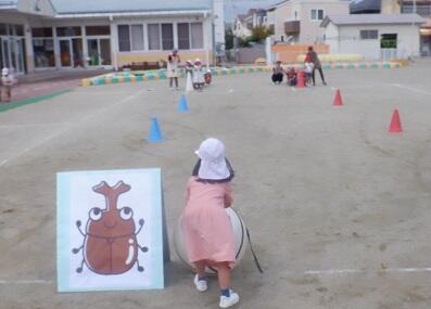 年中さんも 親子競技「ダンゴムシのお散歩」は 真剣でした。 下