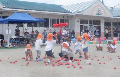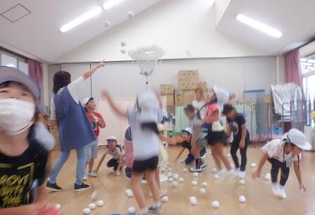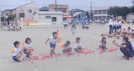下は 園児だけですが 親子で ボールを転がして運びます。