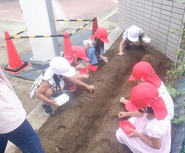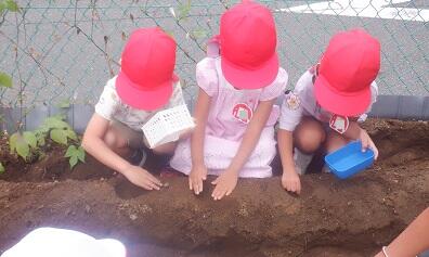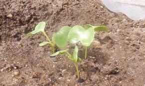 年中さんの植えた「だいこん」が芽を出しました。 下