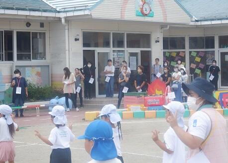 校庭では・・・小名浜二小の1年生全員が来てくれて