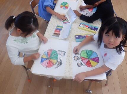 園長の顔を描いてくれました。 お礼に 星型のシールをプレゼントしました。