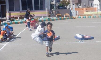 子どもを負ぶった シッポ取りゲームでしたので 大変そうでしたが