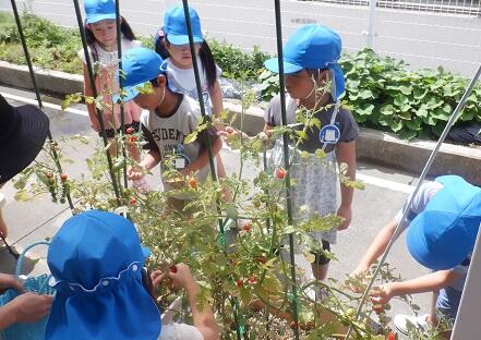 下は 年長さん。 今日 ミニトマトを収穫しました。