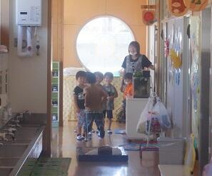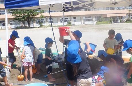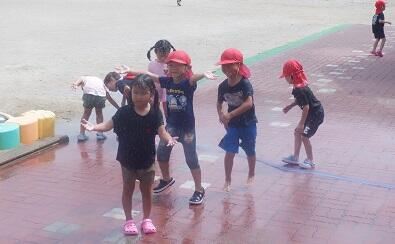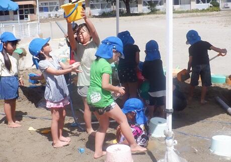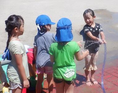 年中さんは 外で 水遊びをしました。 下