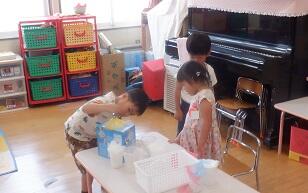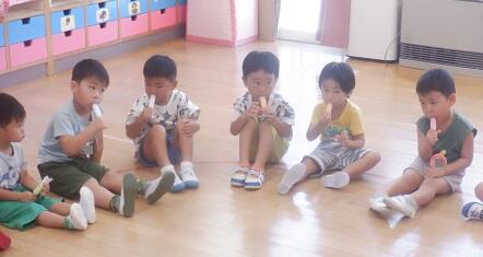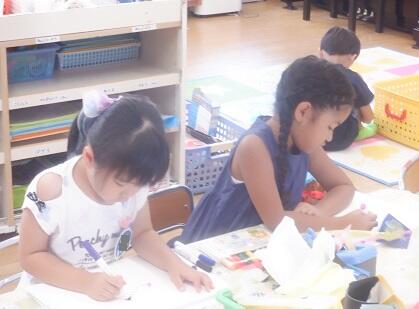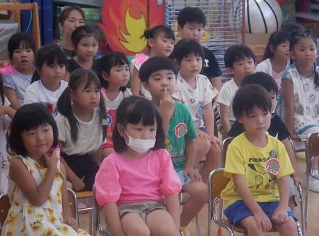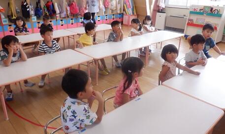 8月28日(月)くもり 年少さんの教室では・・・下