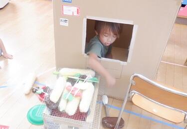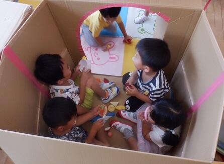 年中さんも 段ボールのテントで・・・・下