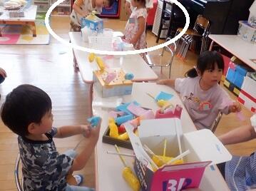 クラスに戻ると・・・年長さんの教室では