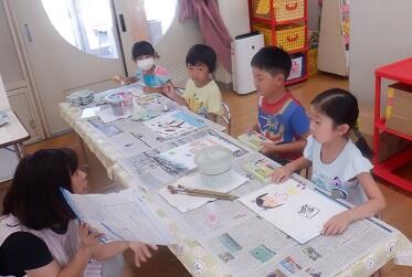 左の子は ザリガニを 右の子は カブトムシを 描きました。