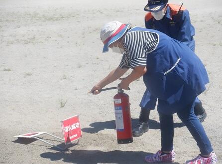 先生方の消火訓練も・・・「せんせい がんばって~」「消火 成功」