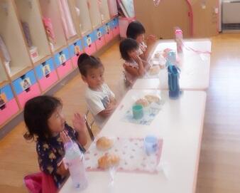 「手を合わせてください」「いただきま~す」 久しぶりのパンです。